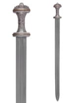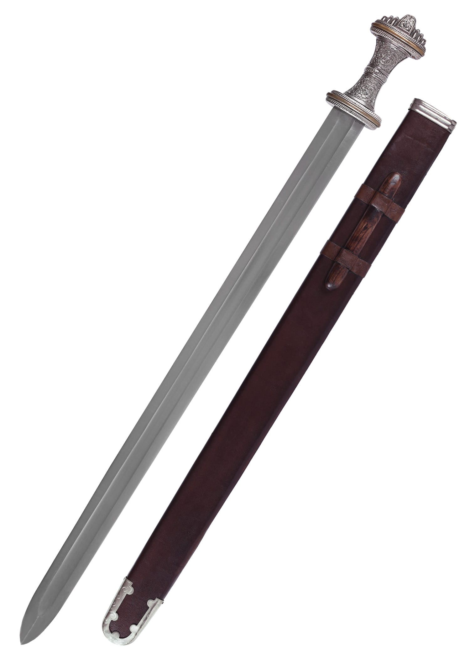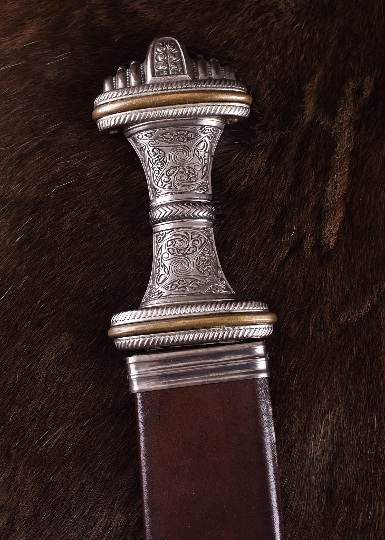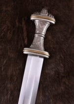 Šis istorinis modelis puikiai atspindi ankstyvųjų viduramžių meistriškumą ir sudėtingą ornamentiką. Lyginant su įprastais dekoratyviniais modeliais, šis išsiskiria termiškai apdoroto spyruoklinio anglinio plieno EN45 geležte, užtikrinančia autentiškumą ir ilgaamžiškumą.