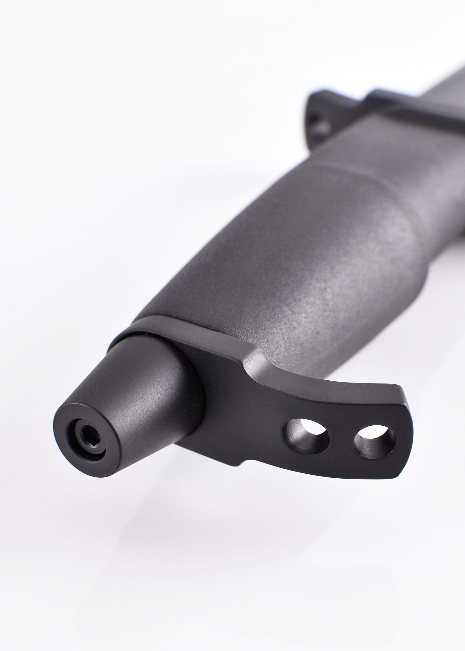 - Geležtės plienas: Böhler N690 (58 HRC) su MIL-C-13924 danga