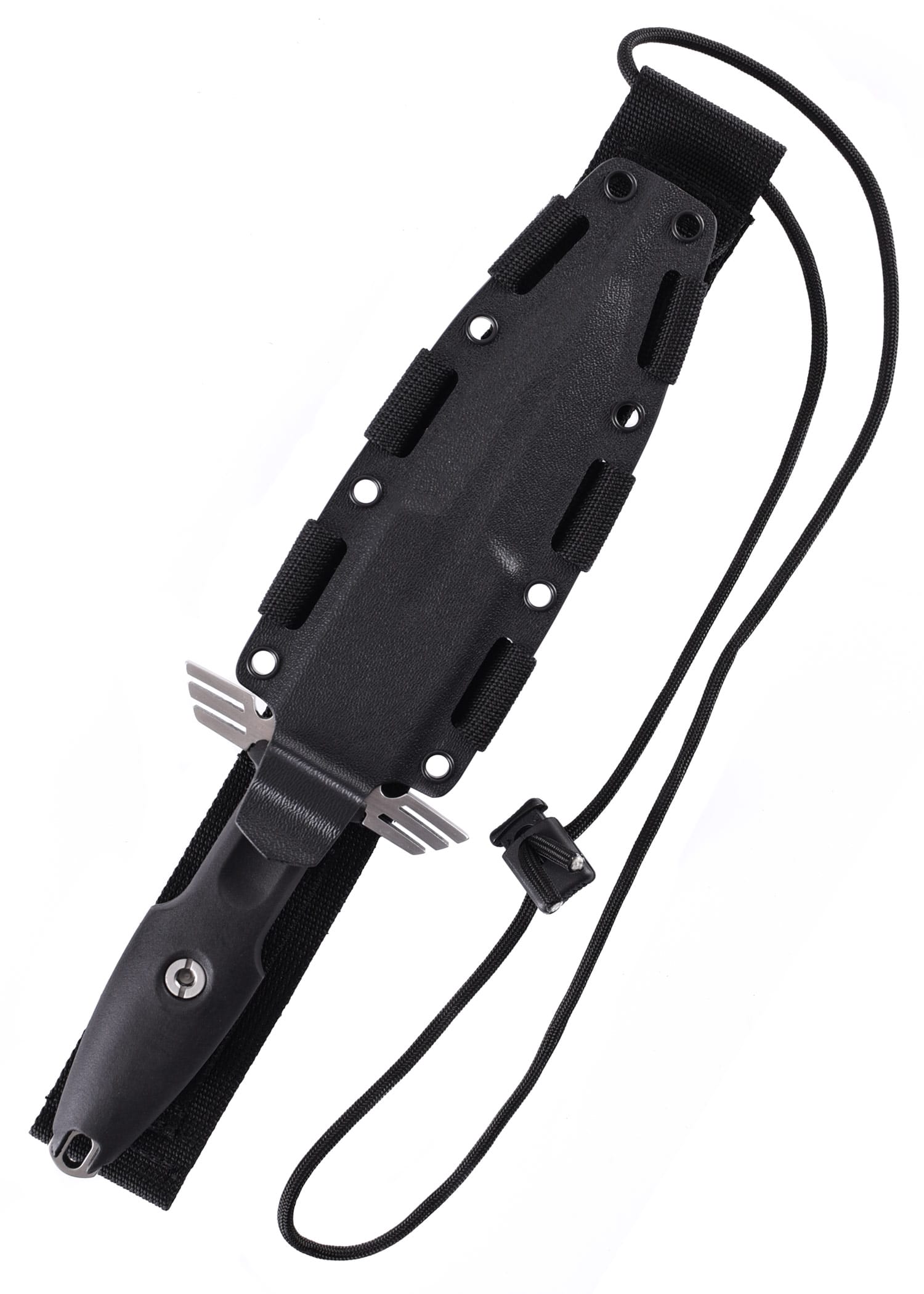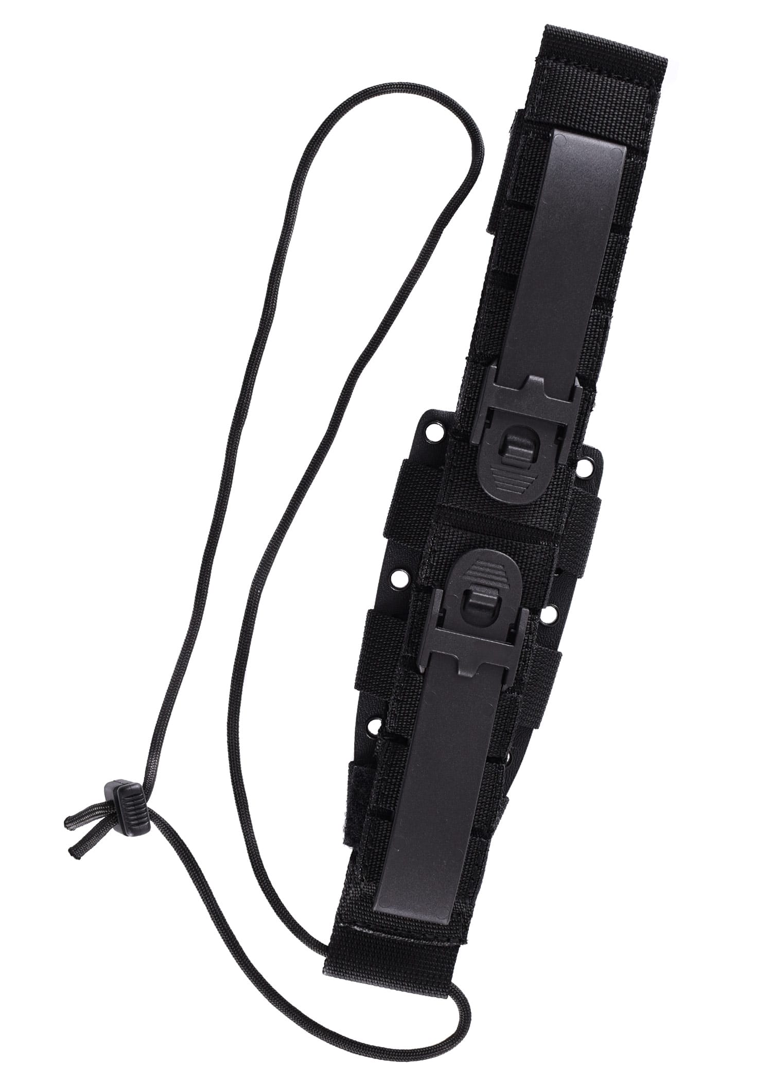 - Hibridinis dėklas: Komplektuojamas su Kydex ir audinio dėklu, turinčiu universalų MOLLE tvirtinimą, leidžiantį patogiai derinti įrankį su kita įranga.