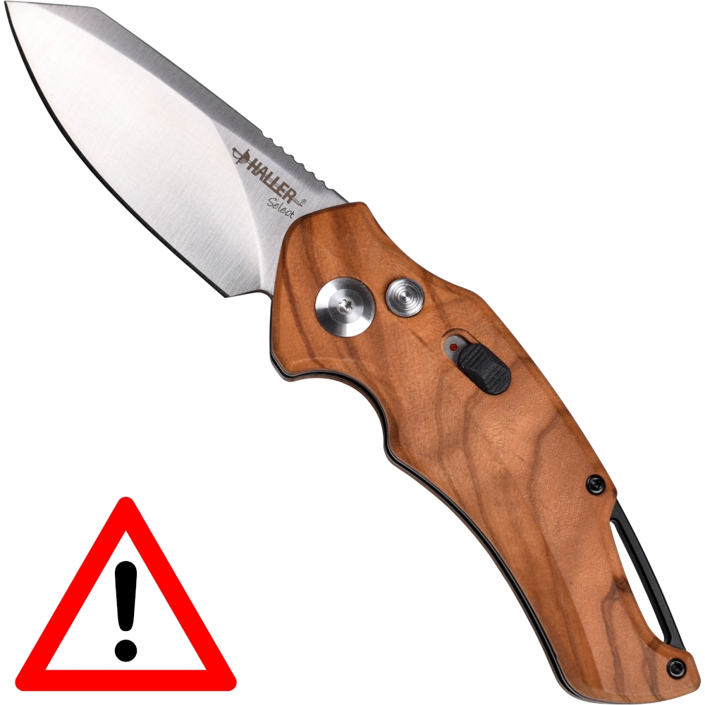 „Haller Select EIMUR“ – tai spyruoklinis sulankstomas peilis su 65 mm ilgio geležte, pagaminta iš D2 nerūdijančio plieno. Elegantiška rankena pagaminta iš alyvmedžio medienos. Tinka kasdieniam nešiojimui ar kolekcijai.