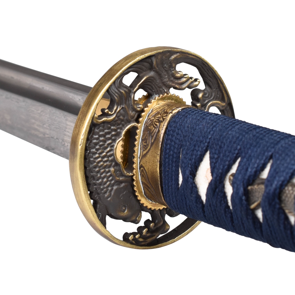 Kardo konstrukcija yra pilnai išardoma, su ilga įkote, pritvirtinta dviem bambukiniais kaiščiais (Mekugi), kas užtikrina tvirtumą. Rankenos apdailai panaudota tikra rajų oda ir mėlynos spalvos medvilninė pynė, atitinkanti klasikinius gamybos metodus.