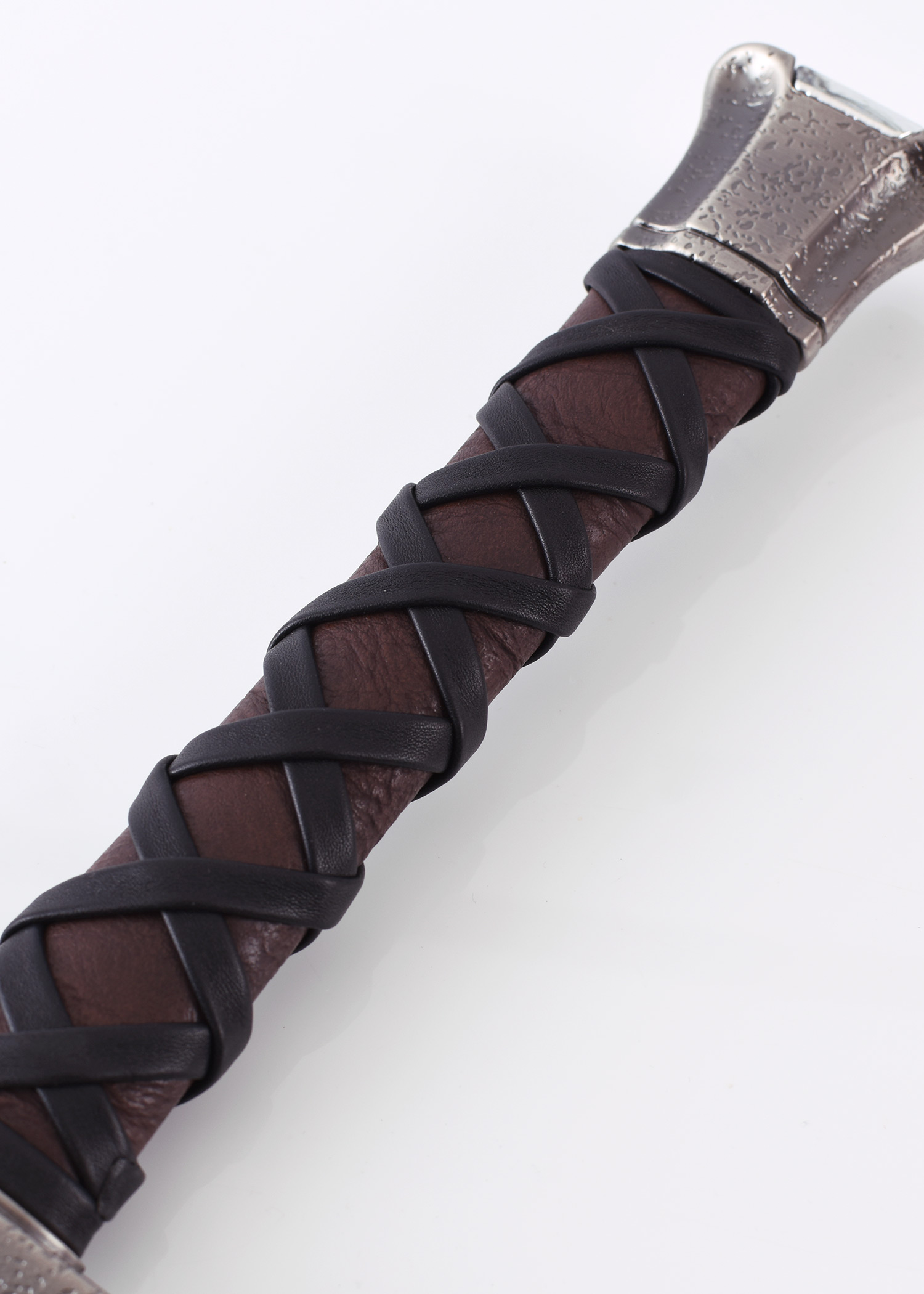 - Rankenos medžiaga: metalinės rankenos dalys, rankena apvyniota oda