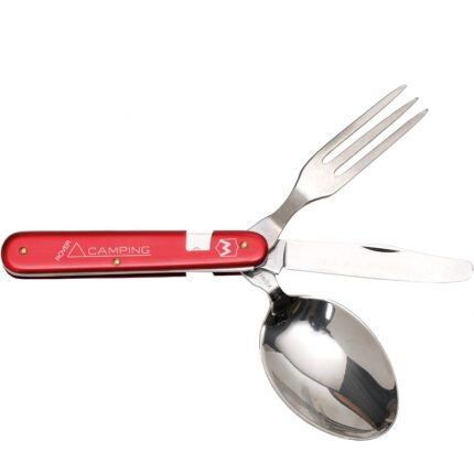 Šio įrankio konstrukcija yra išskirtinė – jis išsiardo į dvi dalis, suteikdamas atskirus stalo įrankius: vienoje pusėje yra peilis ir šaukštas, o kitoje – šakutė. 420 nerūdijantis plienas yra praktiškas pasirinkimas tokio tipo gaminiui, nes yra atsparus korozijai ir lengvai prižiūrimas.