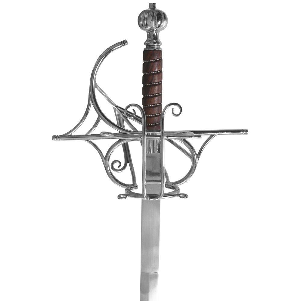 Šis rapieris pasižymi klasikine konstrukcija: ilga geležte iš anglinio plieno ir medine rankena. Komplekte esanti metalo bei odos makštis ne tik papildo bendrą gaminio estetiką, bet ir yra pritaikyta saugiam kardo laikymui.